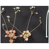 喉咙草《中药大辞典》:喉咙草图片 拼音Hóu Lónɡ Cǎo 别名佛顶珠、地胡椒、五岳朝天、小虎耳草(《草木便方》),铜钱草、白花草(《中国树木分类学》),索河花(《植物名汇》),五朵云、汉先桃草(《中国药植志》),喉辫草(《浙江中医杂志》(4):174,1957),小一口血(《四川中药志》),喉蛾草(《本草推陈》),清明花(《贵州草药》)),白花珍珠草、五角星草(《上海常用中草药》),天星草、天吊冬、顶珠草(《云南中草药》),仙牛桃、金牛草(《陕西中草药》)。 出处《中国药植志》 来源为报春花科植物点地梅的全草或果实。清明前后采收全草,晒干。 原形态一年生草本,高8~15厘米,全体被有白色细柔毛。根出叶丛生,呈莲座状平铺于地上,有细柄;叶片近圆形,径约15毫米,基部略呈心形,边缘呈圆齿状,上面绿色,有时局部带紫红色。花茎自叶丛抽出,3~7枝,顶端有小伞梗5~7,排列为伞形花序;萼绿色,5深裂,裂片卵形,宿存;花冠白色,下部愈合成短管形,上部5裂,向外平展;雄蕊5;子房球形,柱头不明显。蒴果球形,直径2~3毫米,成熟时5瓣裂。种子多数,细小,棕色。花期4月。果期5月。 生境分部生于草地、路旁,牧场上。分布很广,北至河北南至广东、云南,西至四川、青海等地均有野生。 药理作用喉咙草全草乙醇浸出液,经醋酸铅去杂质后之生理盐水溶液,对冷血及温血动物的离体、在体心脏均表现明显的强心作用;对兔、猫静脉注射后血压逐渐升高,死亡前血压下降;对离体家兔肠管和大鼠子宫呈现兴奋作用;对象兔及豚鼠去纤维血均表现较强的溶血现象;如用戊醇及碱式醋酸铅等除去其中所含的皂甙后,对离体蛙、大白鼠心脏及在体豚鼠心脏,仍有明显的强心作用,但所用剂量较前述者有所增加,经处理后的溶液,不含非特异性兴奋心脏的物质,如钙及鞣质,而有糖或其他还原性物质存在。 性味《贵阳民间药草》:"辛甘,微寒,无毒。" 功能主治祛风,清热,消肿,解毒。治咽喉肿痛,口疮,赤眼,目翳,正、偏头痛,牙痛,风湿,哮喘,淋、浊、崩、带,疔疮肿毒,跌打,烫伤。 ①《分类草药性》:"解毒。治蛇伤,诸淋,涂火疔疮,泡酒扫毒除肿。" ②《中国药植志》:"治喉痛,跌打损伤。" ③《贵州民间方药集》:"新鲜果实液汁点眼,可治眼热,去眼翳;全草,治跌打损伤,筋骨疼痛,腰酸背痛;外治蛇咬伤,汤火伤,疔疮。" ⑤《贵阳民间药草》:"祛风清热,治劳伤腰痛,咽痛口糜。" ⑥《四川中药志》:"治遗精,崩症及寒湿带下而虚弱者。" 用法用量内服:煎汤,1~3钱;研末或浸酒。外用:捣敷或研末掺。 复方①治咽喉肿痛,白口疮:佛顶珠为极细末,吹在患处。 ②治跌打损伤或久坐腰酸腰痛:佛顶珠一两,仙桃草五钱,乱头发一钱。泡酒半斤。一天二次,每次服量不超过一两。 ③治咯血:佛顶珠三钱。炕干研末兑酒吞。 ④治五淋白浊:佛顶珠一两,苦竹一两。白糖一两,加水三小碗,煎汤二碗,一剂三次分服。(①方以下出《贵阳民间药草》) ⑤治风湿关节痛:佛顶珠五钱。煎水服。(《贵州草药》) ⑥治偏正头痛、牙痛、风火赤眼:点地梅三钱至一两。煎服。(《上海常用中草药》) ⑦治哮喘:鲜天星草-至二两。水煎服。(《云南中草药》) 摘录《中药大辞典》 《中华本草》:喉咙草拼音Hóu Lónɡ Cǎo 别名佛顶珠、地胡椒、五岳朝天、小虎耳草、铜钱草、白花草、索河花、五朵云、汉先挑草、喉癣草、小一口血、喉蛾草、清明花、白花珍珠草、五角星草、天星草、天吊冬、顶珠草、仙牛桃、金牛草 出处出自《中国药植树志》 来源药材基源:为报春花科植物点地梅的全草或果实。 拉丁植物动物矿物名:Androsace umbellata (Lour.)Merr.[Drosera umbellata Lour.;Primula umbellata(Lour.) Bentv.] 采收和储藏:清明前后采收全草,晒干。 原形态一年生或二年生无茎草本。全株被节状的细柔毛。主根不明显,具多数须根。叶全部基生,平铺地面; 叶柄长1-4cm,被开展的柔毛;叶片近圆形或卵圆形,直径5-2omm,先端钝圆,基部浅心形至近圆形,边缘具三角状钝牙齿,两面均被贴伏的短柔毛。花葶通常数枚自叶丛中抽出,高4-15cm,被白色短柔毛。伞形花序4-15花;苞片数枚,卵形至披针形,长3.5-4mm;花梗纤细,长1-3cm,果时伸长可达6cm,被柔毛并杂生短柄腺体;花萼5深裂,几达基部,裂片长卵形或卵状披针形,长3-4mm,果期伸长达5mm并呈星状水平开展,具3-6条明显纵脉;花冠白色,直径4-6mm,筒部长约2mm,短于花萼,喉部黄色, 5裂,裂片倒卵状长圆形,长2.5-3mm,宽1.5-2mm;雄蕊着生于花冠筒中部,长约1.5mm,花丝短;于房球形,花柱短,胚珠多数。蒴果近球形,直径2.5-4mm,先端5瓣裂,裂瓣膜质,白色,具宿存花萼。种子棕褐色,长圆状多面体形,直径0.6-0·8mm。花期4-5月,果期6月。 生境分部生态环境:生于向阳地、疏林下及林绿、草地等处。 资源分布:分布于东北、华北和秦岭以南各地。 性状性状鉴别 全草皱缩,被白色节状细柔毛.根细须状。叶基生,多皱缩碎落,完整者呈近圆形或卵圆形,黄绿色,直径5-20mm,边缘具三角状钝牙齿,两面均被贴伏的短柔毛;叶柄长1.0-4.Ocm,有白毛。花葶纤细,有的可见顶生伞形花序,小花浅黄色,或已结成球形蒴果,具深裂的宿萼。质脆,易碎。气微,味辛而微苦。 化学成分全草含皂甙、鞣质酚类物质和糖类,并有生物碱沉淀反应[1]。 药理作用喉咙草全草乙醇浸出液,经醋酸铅去杂质后之生理盐水溶液,对冷血及温血动物的离体、在体心脏均表现明显的强心作用;对兔、猫静脉注射后血压逐渐升高,死亡