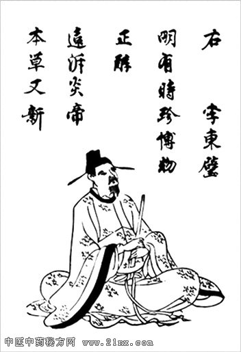 对此,笔者经过调查,发现原存像来历清楚,出自日本前富山药学专门学校助教谕、药剂师日野五七郎和一色直太郎合著、大正十五年(1926)由同济号书房刊行的《最新和汉药物学正续合编》(以下简称“和汉药物学”)一书中,是该书的插图之一,系日本木刻作品,插图的文字说明是:“汉方本草学之翘祖李时珍氏画像”(以下简称“时珍画像”)(另外三副插图分别是雷斅、张仲景、葛洪的画像,均为木刻,分别有文字说明。此4幅画像均未标明画家人名,其风格一致,造型相似,形貌相近,当出自一人之手。),远非是接近李时珍原貌的画像。此书复于昭和三年(1928年)再版。“时珍画像”是出自日本人画家的想象作品。笔者作为中华中医药学会李时珍学术研究会委员,已撰文论述(见吴佐忻《“李时珍原貌之像”小考》,载钱超尘、高文柱《纪念李时珍诞辰480周年学术论文集》,中医古籍出版社1998年版)。这里,笔者重申《“李时珍原貌之像”小考》的观点并作补述。