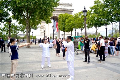 7月14日,恰逢法国国庆日,观看完国庆阅兵仪式后,同学们在巴黎香榭丽舍大道西端的戴高乐广场上,以凯旋门为背景表演起五禽戏,不时引来行人驻足观看,还有人跟着比划起来。这群年轻的中医学子还把五禽戏和梅花桩表演带到了威尼斯的圣马尔谷广场,带到了捷克布拉格广场的旧市政厅大楼前,伴随着威尼斯大运河的波浪声和天文钟的清脆钟声,东西方的历史和文化仿佛在此刻交融。
