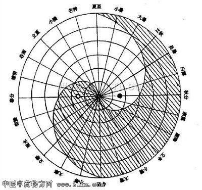 古人通过观察日影并结合自然气息的变化,得出:冬至阴极而一阳生,冬至这一天白天最短,夜间最长;夏至阳极而一阴生,夏至这一天白天最长,夜间最短;冬至到夏至的上半年为阳,夏至到冬至的下半年为阴。具体表示就是太极图。(图1)