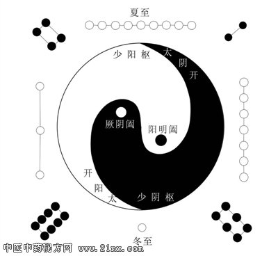 古人把天地间的盛衰变化理解为一种“槖”的运动。《老子》:“天地之间,其犹槖龠乎?”槖运动一开一阖,出现“开、阖、枢”三种状态。开阖运动化生万物,《黄帝内经》:“三而成天,三而成地,三而成人”,故曰“三生万物”。阴阳各有开、阖、枢,就产生了“六气”。古人把六气命名为:太阳、少阳、阳明、太阴、少阴、厥阴。顾植山老师指出:三阴三阳说是中医阴阳学说的精髓,指导中医临床意义重大。《伤寒论》的“六经辨证”就是指此三阴三阳,表述的是自然界阴阳离合的六种状态。