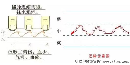 涩脉是千年难明之脉。《说文》对涩的解释是:不滑。《说文》对滑的解释是:利。涩脉即指不滑的脉,不流利的脉。可知涩脉的唯一指向是血脉的不流利。王冰在《素问·脉要精微论》注解中所说:“涩者,往来不利而蹇涩也。”由于对涩脉理解难以到位,导致其在指下的感觉难以准确把握,究竟哪一种信息代表不流利,一直没有明确的说法。这导致有关涩脉的临床和科研的处于停滞状态。笔者专注于涩脉所指向的不流利,仔细体会王冰在注解中所提到的“往来”二字,结合临证实践,认为前后两次脉动应指的脉的部位不一致是血脉不流利在指下的客观信息,据此提出涩脉的客观诊断标准:前后两次脉动应指的脉的部位有差异的脉是涩脉,差异程度越大,代表涩的程度越高。
