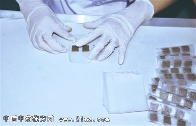 用一张张透明蜡纸将小药块儿包好,再装入密封袋中。使用的时候将小药块儿贴到医用药贴上,一片小小的三伏贴就算完成了。虽然大部分需要手工制作,但速度可是一点儿也不慢。 |