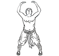 2.杵的特点是重。所以在两手翻掌上托时,要徐徐向上用劲,感受三焦区域的开合。中医导引诀曰:两手托天理三焦,即是谓此。