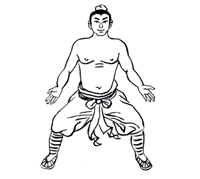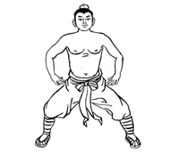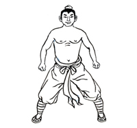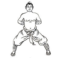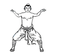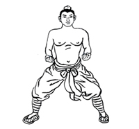 动作要领:两脚开立,自上而下放松,舌抵上腭,双目平视。