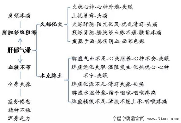 失眠主要表现为睡眠时间、深度的不足。轻则入睡困难,或时寐时醒,或醒后不易再寐;重则彻夜难眠,严重影响人的生活、工作、学习和健康。亚健康者大多心烦易怒,怒则伤肝,肝气郁结,气滞血瘀,久郁化火,肝火扰心,心不藏神,神不守舍,心神外越,则导致失眠。肝木太过则伤脾,脾伤则钠呆食少,生化乏源,营血亏虚,不能上奉于心,致心神不安而失眠;脾伤则运化失职,水湿不运,生痰化热,痰热扰心,心神不宁,也会出现失眠。
