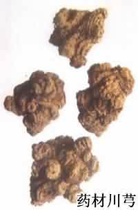 【原形态】 多年生草本,高40-70cm。全株有浓烈香气。根茎呈不规则的结节状拳形团埠,下端有多数须根。茎直立,圆柱形,中空,表面有纵直沟纹。茎下部的节膨大成盘状(俗称苓子),中部以上的节不膨大。茎下部叶具柄,柄长3-10cm,基部扩大成鞘;叶片轮廓卵状三角形,长12-15cm,宽10-15cm,三至四回三出式羽状全裂,羽片4-5对,卵状披针形,长6-7cm,宽5-6cm,末回裂片线状披针形至长卵形,长2-5mm,宽1-2mm,顶端有小尖头,仅脉上有稀疏的短柔毛;茎上部叶渐简化。复伞形花序顶生或侧生,总苞片3-6,线形,长0.5-2.5cm;伞辐7-20,不等长,长2-4cm;小伞形花序有花10-24;小总苞片2-7,线形,略带紫色,被柔毛,长3-5mm;萼齿不发育;花瓣白以,倒卵形至椭圆形,先端有短尖状突起,内曲;雄蕊5,花药淡绿色;花柱2,长2-3mm,向下反曲。幼果两侧扁压,长2-3mm,宽约1mm;背棱槽内有油管1-5,侧棱槽内有油管2-3,合生面有油管6-8。花期7-8月,幼果期9-10月。