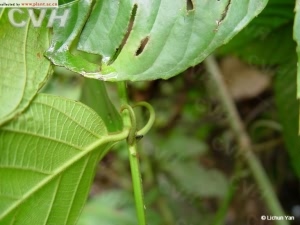 3.大叶钩藤 本种与前两种睥区别在于:叶片大,革质;花萼裂片线状长圆形;花和小蒴果具柄,花间小苞片无。