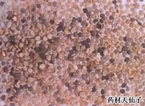 过去尚有一种进口天仙子,商品习称"南天仙子",为爵床科植物水蓑衣(参见"大青草"条)的种子。外形略呈心脏形而扁平,表面红褐色或棕红色,较平坦,无网纹或突起,但边缘有一圈灰黄色透明物,遇水则成粘液状。气微,味淡。曾习用于广东、广西、福建等地。此种进口天仙子,与上述天仙子截然不同,不能同等使用。