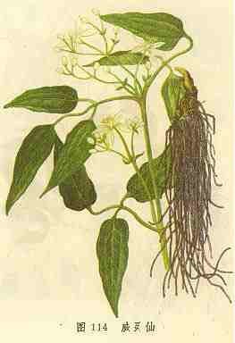 6.《南京民间药草》:鲜根泡酒服治胃痛;和白糖打烂敷脑门处一昼夜,见皮肤生泡即除去,治牙龈肿胀。