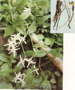 【原形态】 攀援性灌木,高4~10米。根多数丛生,细长,外皮黑褐。茎干后黑色,具明显条纹,幼时被白色细柔毛,老时脱落。叶对生,羽状复叶,小叶通常5片,罕为3片,小叶卵形或卵状披针形,长3~7厘米,宽1.5~3.6厘米,先端尖,基部楔形或广楔形,罕有浅心形者,全缘,上面沿叶脉有细毛,下面光滑,主脉3条。圆锥花序腋生及顶生,长12~18厘米;苞片叶状;萼片4,有时5片,花瓣状,长圆状倒卵形,白色,顶端常有小尖头突出,外侧被白色柔毛,内侧光滑无毛;雄蕊多数,不等长,花丝扁平;雌蕊4~6,心皮分离,子房及花柱上密生白色毛。瘦果扁平状卵形,略生细短毛,花柱宿存,延长呈白色羽毛状。花期5~6月。果期6~7月。
